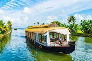 Today, the group travels to the backwater haven of Alleppey. By noon, you step aboard your private houseboat, a floating home that glides through the serene Vembanad Lake and its narrow canals. As you cruise, Kerala’s rural life unfolds around you—coconut palms, paddy fields, and traditional homes. Freshly cooked traditional Kerala meals are served onboard, and by evening, the sunset over the lake adds a magical touch to your stay.